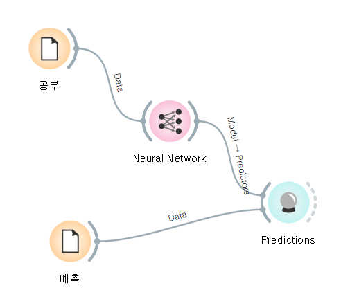 2. 공부 데이터와 프리딕션(예측) 항목 중간에 모델로 연결
